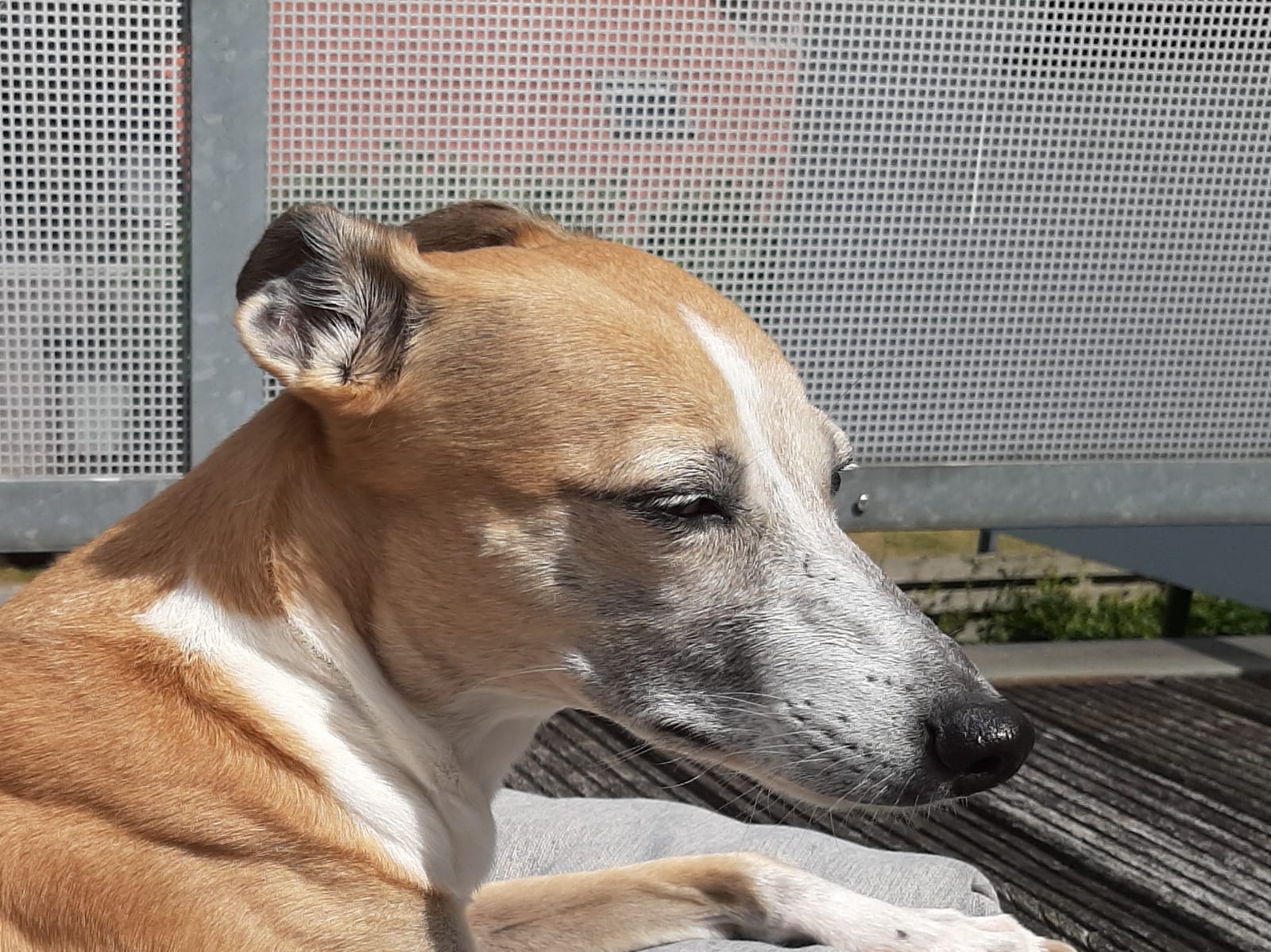 Wij kwamen Thyra voor het tegen toen ze net twee jaar was. Ze kwam uit een erg groot roedel en het was beter voor een aantal van die roedelgenoten om een ander huis te krijgen. Voor Thyra vonden we een alleraardigst echtpaar, dat verder geen honden had, en dat Thyra alle aandacht kon bieden die ze nodig had. En dat deden ze! Jarenlang. Totdat het noodlot toesloeg. De gezondheidstoestand van een van beiden ging plotsklaps snel achteruit en de zorg voor de partner èn voor Thyra werd domweg te veel. Dan is een optie natuurlijk gewoon doormodderen, maar of dat nou het beste voor alle partijen is valt zeer te bezien. Met pijn in het hart werd besloten dat wij ten tweeden male een nieuw huis voor Thyra gingen zoeken. Dat leek in eerste instantie nog niet zo eenvoudig te zijn, vooral in verband met de toch wat gevorderde leeftijd van Thyra. Maar soms heb je gewoon heel veel geluk.
